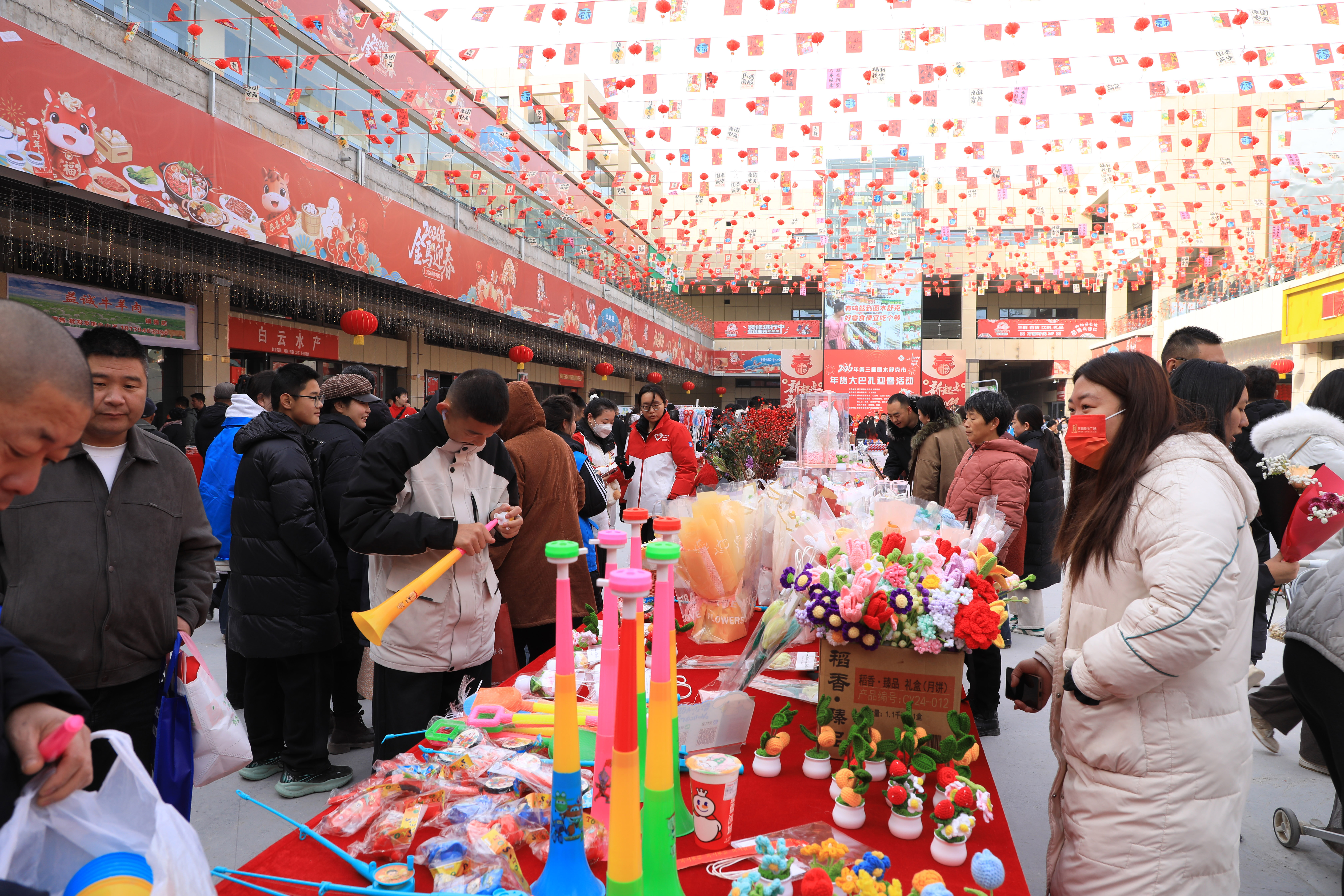 摊位整齐划一,各类商品琳琅满目。特色干果、新鲜果蔬、手工糕点、畜禽肉类、民俗手工艺品等一应俱全,一站式满足职工群众的年货采购需求。